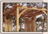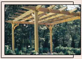 A pergola gives a deck character and provides new options for decoration and design. Pergolas and arbores are great for vines, other climbing plants such as roses, and hanging baskets. If you don't have a green thumb, adorn the pergola with lights or decoration for special occasions. With slight changes of the supporting columns and overhead lattice, a pergola can fit almost any house style. |