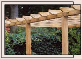 A pergola gives a deck character and provides new options for decoration and design. Pergolas and arbores are great for vines, other climbing plants such as roses, and hanging baskets. If you don't have a green thumb, adorn the pergola with lights or decoration for special occasions. With slight changes of the supporting columns and overhead lattice, a pergola can fit almost any house style. |